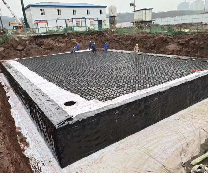 高分子防護(hù)排水異型片自粘土工布卷材是由高密度聚乙烯(HDPE)純白原料,在熔融狀態(tài)下經(jīng)真空吸塑一次成型制成,制造出的單向連續(xù)密閉殼體型凸起的板狀材料,形成一種膜、殼連接,具有立+體排水空間和一定支撐剛度,液體、氣體可以在其內(nèi)流動(dòng)的防護(hù)排水卷材。